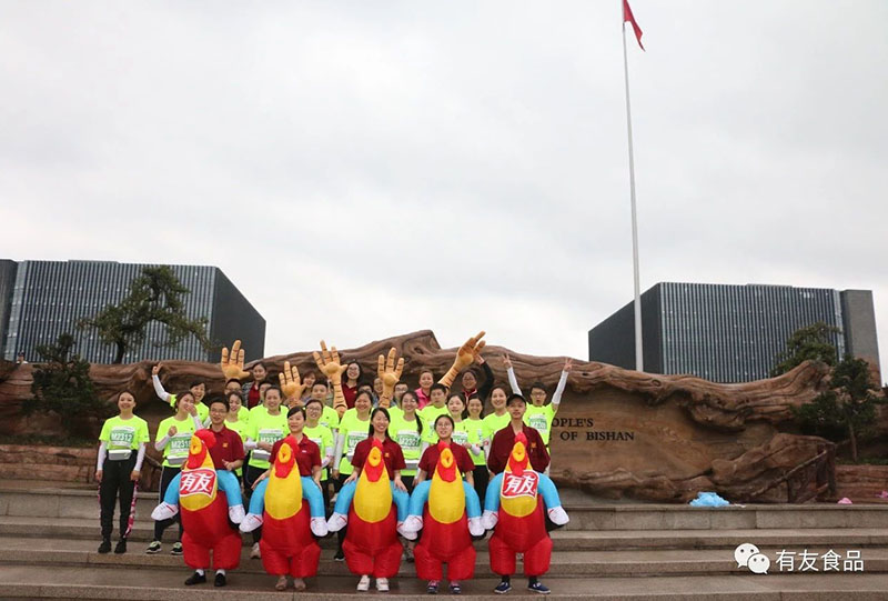 2019年4月14日,璧山半程国际马拉松举行。为丰富员工业余文化生活,增强团队合作,展现公司员工奋发向上、努力拼搏的精神面貌,有友食品组织20名员工参加了7.5公里迷你马拉松。