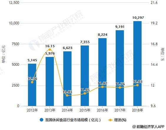2012-2018年我国休闲食品行业市场规模统计及增长情况