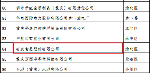 2021年9月13日,重庆市企业联合会(企业家协会)发布2021重庆百强企业名单。有友食品荣获2021“重庆制造业企业100强”荣誉称号。