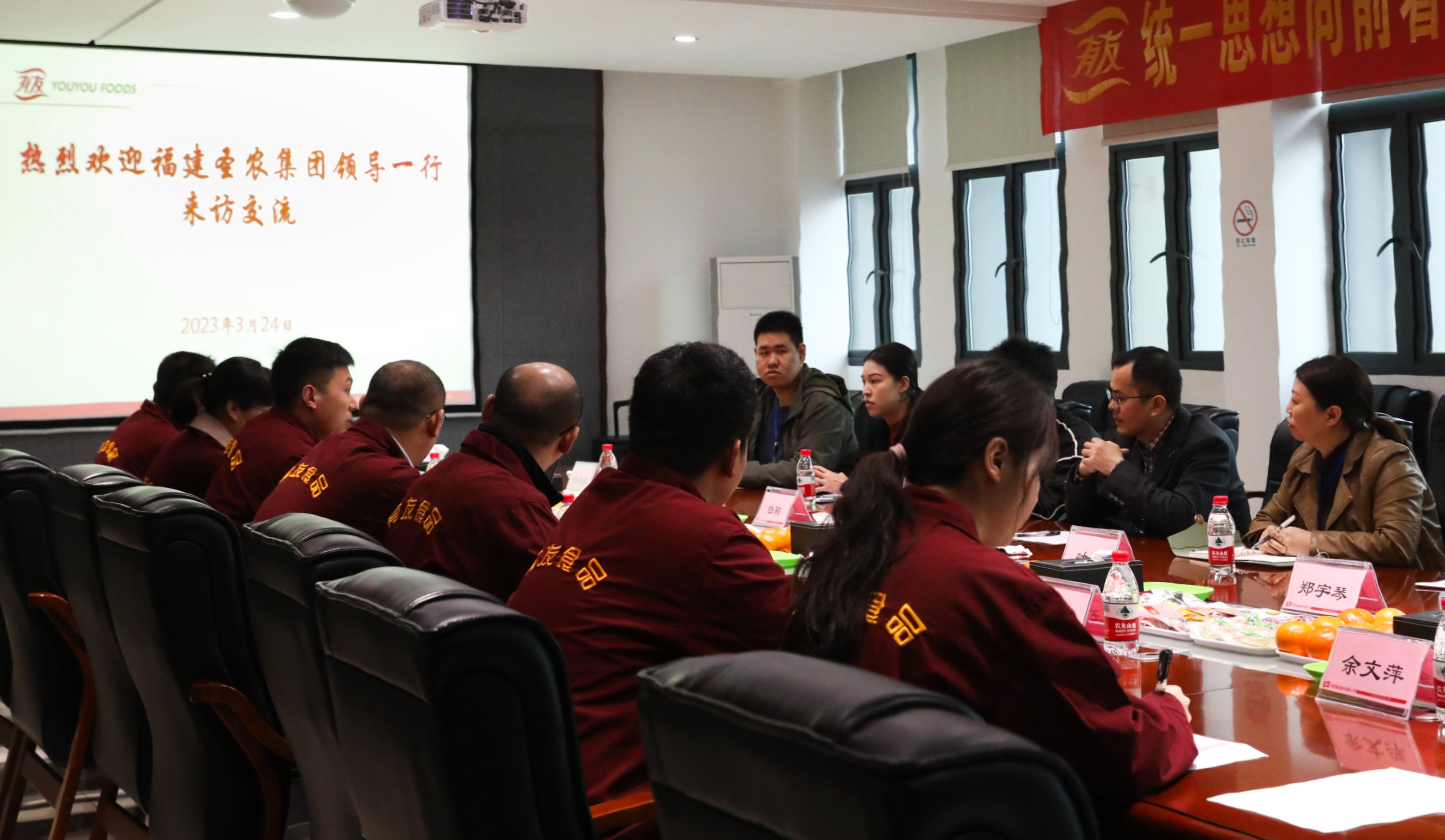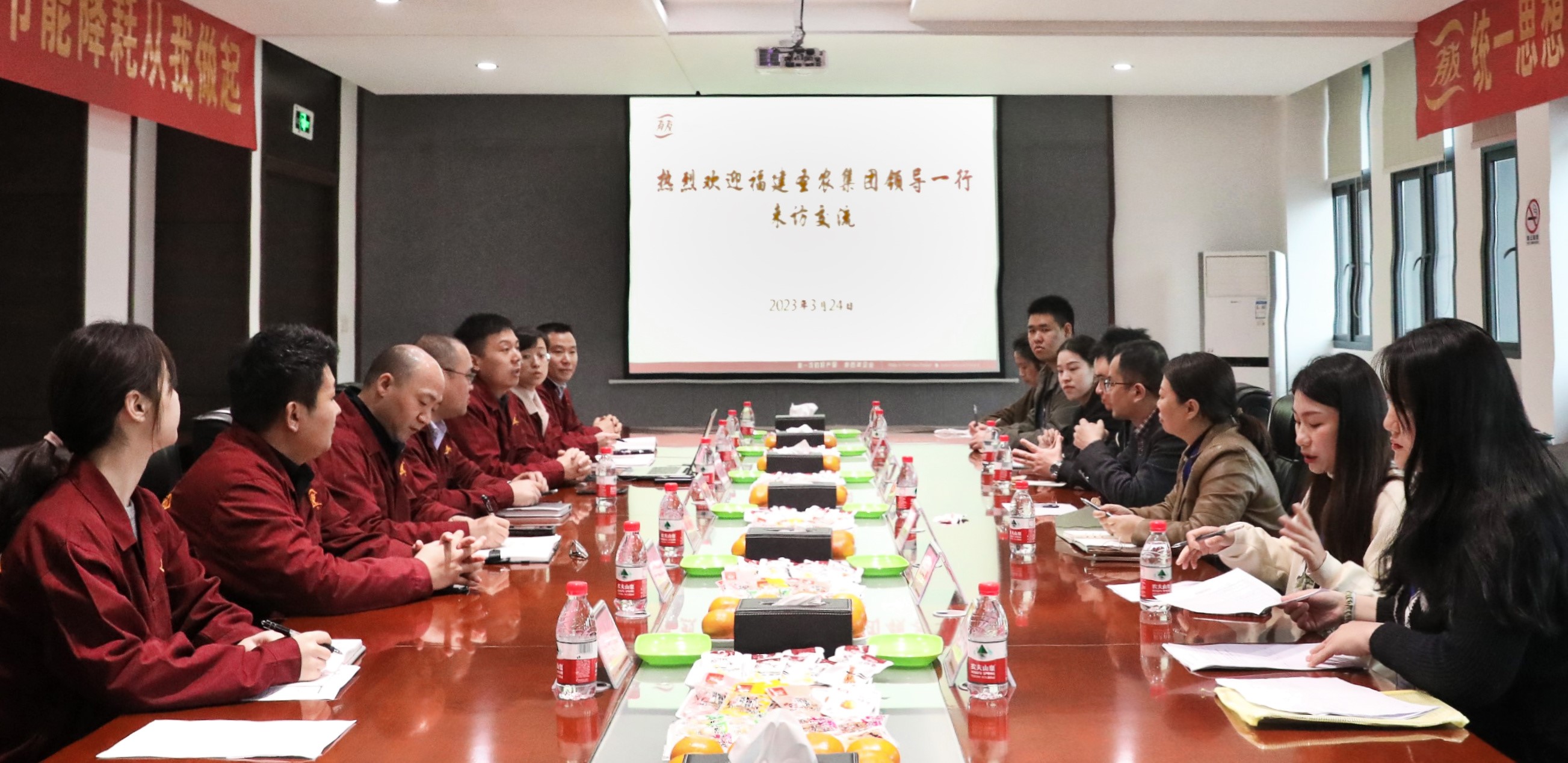3月24日,福建圣农发展股份有限公司品管部总监叶蔚一行前往米兰app体育登录入口-米兰体育(中国) 璧山生产基地参观交流,深入了解有友25年来的发展路径,与米兰app体育登录入口-米兰体育(中国) 常务副总鹿游进行座谈交流。