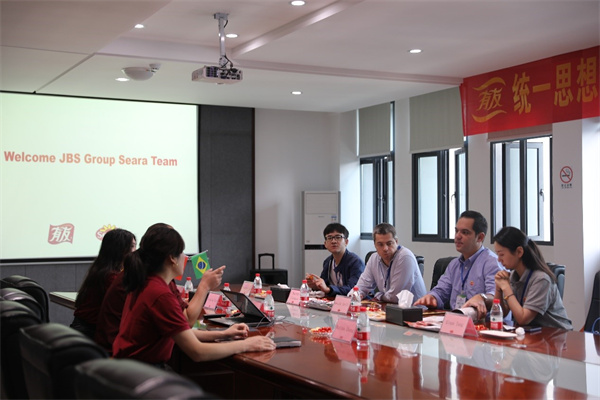 5月24日,巴西JBS集团Seara公司国际市场执行总监Mr.Marcelo、亚洲区销售总监Mr.Danilo、中国区销售经理Mr.Zhou、Mrs.Qiana一行前往米兰app体育登录入口-米兰体育(中国) 璧山生产基地参观交流,沟通双方的发展现状与展望,米兰app体育登录入口-米兰体育(中国) 常务副总鹿游进行了接待。
