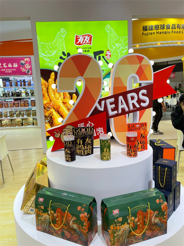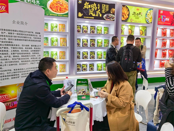 展会期间,我司展位吸引了众多观众驻足观看和咨询。展会现场热闹非凡,我司销售团队的同仁们与意向客商在“专业,诚信,高效,共赢”中洽谈促单,多个渠道达成初步合作,未来将携手共进,实现商业目标。作为行业先驱,有友食品拥有26年的品牌历史沉淀,先进完善的车间设施设备和严谨精进的质量管控体系。作为国内成熟的自有品牌产品商标之一,有友食品希望在此次展会寻得合作伙伴共话商机,一起加码布局这场“渠道定制”。